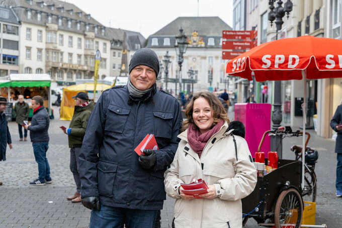 Mit der Plakatierung in Bonn hat die heiße Wahlkampfphase begonnen. Neben den Aktionen des Unterbezirks wird es auch im Ortsvereinsgebiet zahlreiche Aktivitäten für die Wiederwahl von Jessica Rosenthal in den Bundestag geben, z.B. Infostände, Tür-zu-Tür-Aktionen und Flyerverteilungen. Unsere Infostände in der Pützstraße sind jeden Mittwochnachmittag von 16:30 Uhr bis 17:30 Uhr und jeden Samstagmorgen von 10:30 Uhr bis 12:30 Uhr. Kommt vorbei und informiert euch über die sozialdemokratischen Konzepte für die nächsten vier Jahre! Am 11. Januar geht's los!