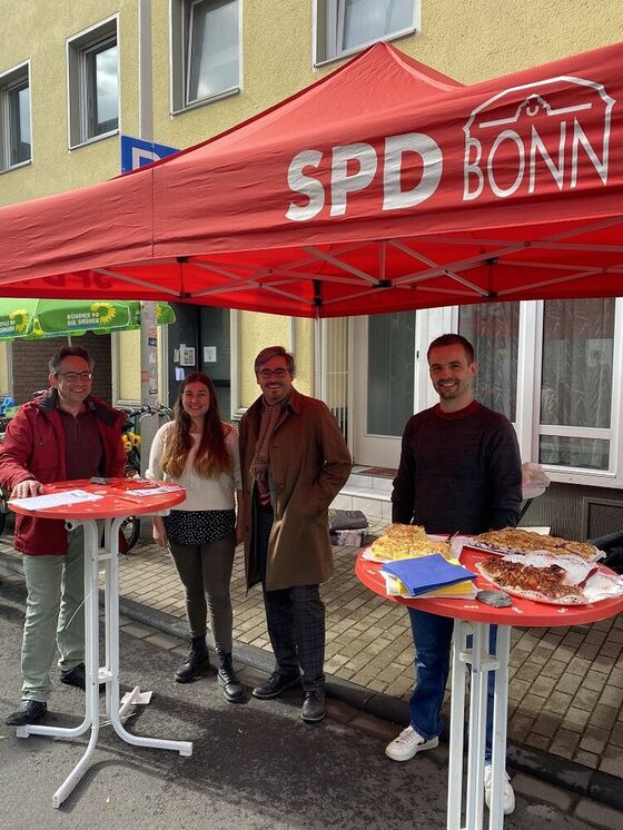 Der Ortsverein war mit einem Stand beim diesjährigen Kessenicher Herbstmarkt dabei. Mit Kuchen und einer Umfrage zur Zufriedenheit mit der aktuellen Verkehrssituation im Bonner Süden machten die Genoss:innen auf sich aufmerksam. Zu Gast war auch SPD-UB Co-Vorsitzender Gabriel Kunze. Der Ortsvereinsvorstand wird sich mit dem Stimmungsbild zur Verkehrssituation bei der nächsten Sitzung beschäftigen.