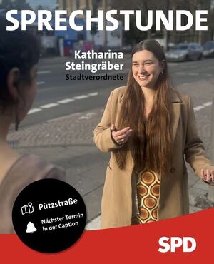 Einmal im Monat bietet Stadtverordnete Katharina Steingräber eine Sprechstunde in der Pützstraße an (vor der Volksbank). Katharina möchte unkompliziert mit den Kessenicher:innen und Dottendorfer:innen ins Gespräch kommen, ihre Anliegen aufnehmen und SPD-Präsenz vor Ort zeigen. Neben Gesprächen gibt es Kaffee, Tee und Kekse.